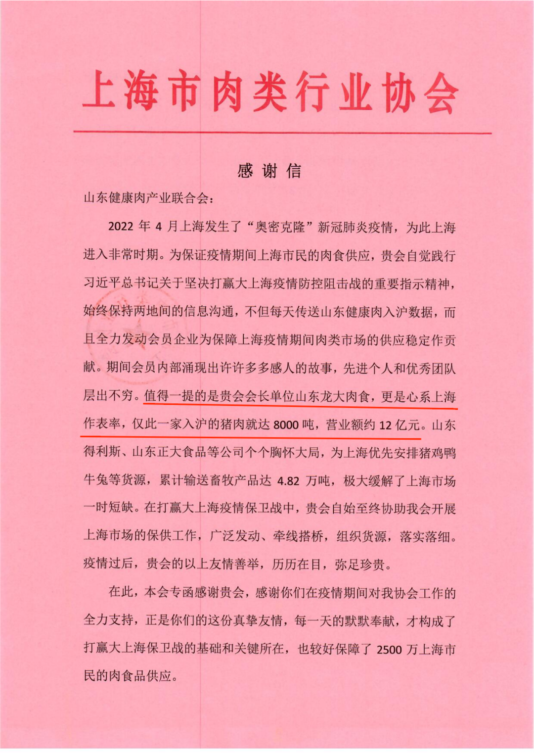 7ÔÂ20ÈÕ£¬ÉϺ£ÊÐÈâÀàÐÐҵлáÏòɽ¶«¿µ½¡È⹤ҵÍŽá»á·¢À´Ð»Ð»ÐÅ£¬Ð»Ð»É½¶«¿µ½¡È⹤ҵÍŽá»áÔÚÒßÇéʱ´úΪ°ü¹ÜÉϺ£ÊÐÃñµÄÈâʳ¹©Ó¦Ëù×ö³öµÄÆð¾¢ÓëТ˳¡£Ð»Ð»ÐÅÖÐÌØÊâÌáµ½£¬°¬ÉÐÌåÓý¹ÙÍøÃÀʳ×÷Ϊɽ¶«¿µ½¡È⹤ҵÍŽá»á»á³¤µ¥Î»£¬ÐÄϵÉϺ£×ö¿¬Ä££¬ÒßÇéʱ´úÈ뻦Èâʳ´ï8000¶Ö£¬ÎªÉϺ£Êп¹Òß±£¹©×ö³öÁËÖ÷ҪТ˳¡£