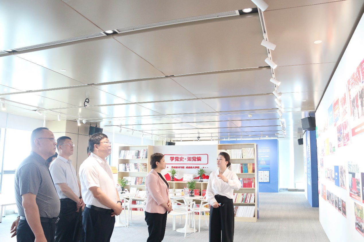 调研团一行旅行了蓝润集团红色驿站。蓝润集团党委书记罗云燕先容了企业历程、工业生长,以及在特色党建、社会责任等方面事情。